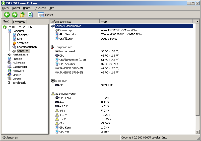 Computer > SensorenBei mir gerade 45 Grad