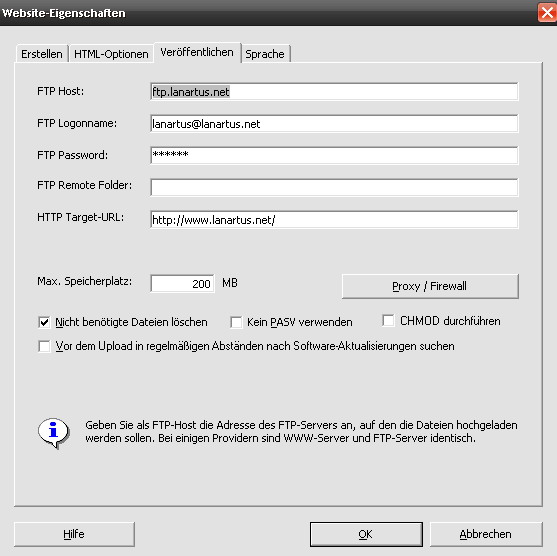 Das es mit dem hochladen einer Internetseite das erste Mal ist, könnte es vielleicht auch sein, dass ich die Veröffentlichungsoptionen falsch eingetragen habe: siehe Anlage 3.