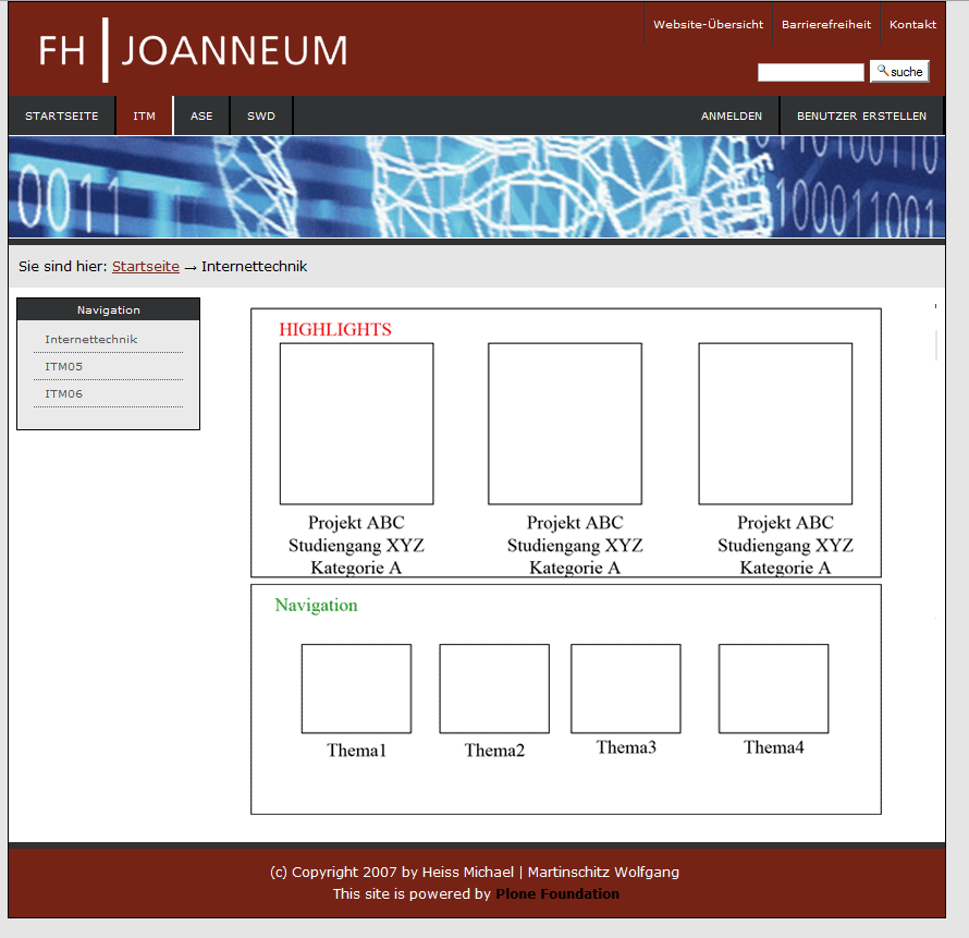 Folgende Seite soll mit Plone umgesetzt werden: (Grafik im Anhang)