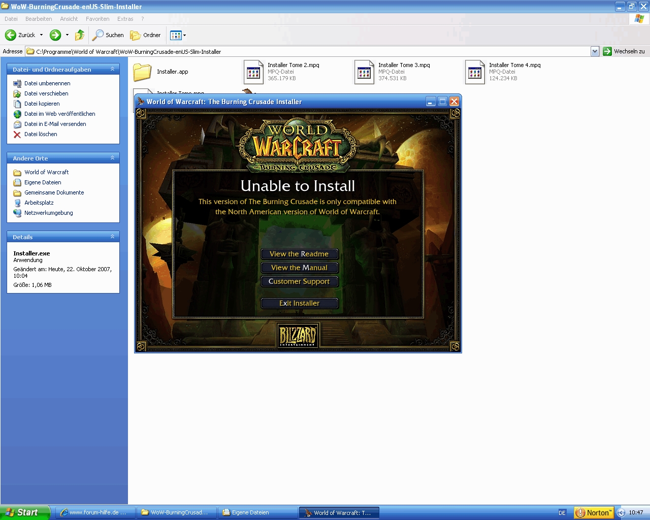 Ich spiele auf einen Privat sever möchte mit ,,Burning Crusade" spielen aber wen ich es installieren will steht dar das was auf dem Bild ist wo krige ich die Deutsche version? oder Wie Patche ich es Zu der ordamerikanischen?