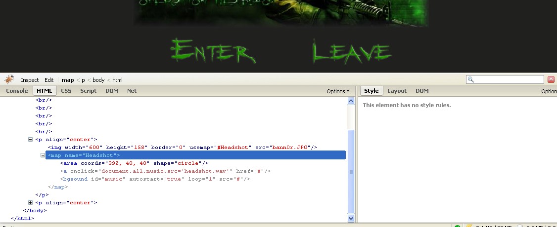 ich habe auf meine page ne usemap eingebaut und will das er bei dem klick in den hidden circle den sound "headshot.wav" hört aber wie mach cih das ich habe bis jetzt den code so: