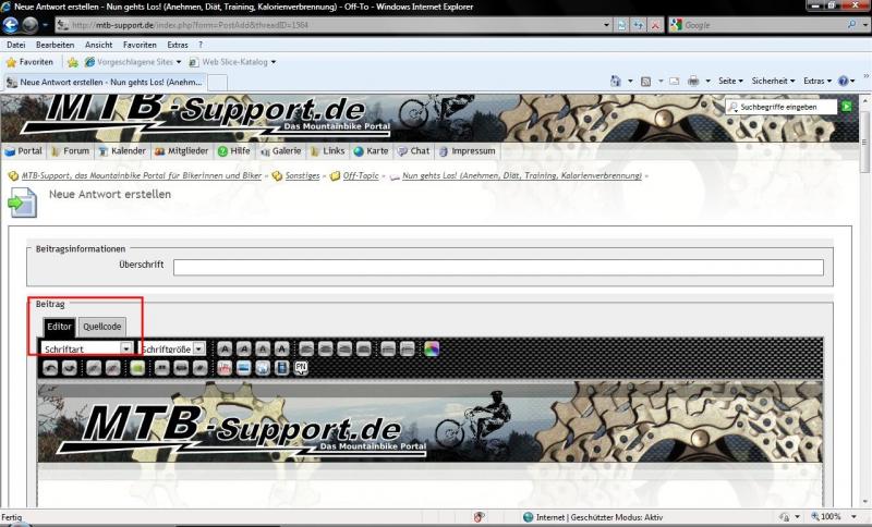 Hallo, nun habe ich meine IE 6 Probleme gelöst, da kommt dann pünklich jemand mit dem IE 8 an, der im Forum die Header Grafik beim Editor einspielt. Hat jemand dazu eine Lösung.