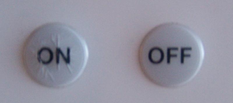 Erstes Bild:Links der eingerissene On, rechts der noch "unberührte" Off Knopf.