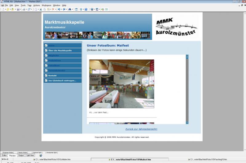Auf meiner Homepage http://www.html.de/www.mmk-aurolzmuenster.at.tt weicht der Fotostreifen (siehe unter "Fotoalbum" - irgendeine Unterseite) in der Anzeige im Internet Explorer 8 ab (in firefox und Google Chrome stimmt's!): statt wie geplant von links nach rechts zu verlaufen, geht er von oben nach unten! Weiß jemand, welchen Befehl ich genauer oder anders definieren muss, oder ist das gar nicht möglich?