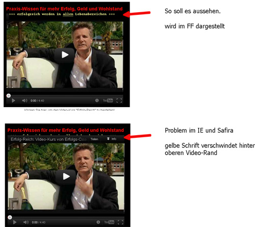 gelbe Schrift aber hinter das Video.