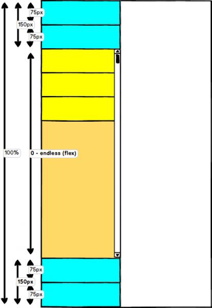 Ich möchte eine Navigation für eine Webapplikation erstellen. Diese sieht wie folgt aus. Sie ersteckt sich über die volle Höhe am linken Rand (Breite 250px). Es gibt jeweils am oberen und unteren Rand je zwei Elemente die 75px hoch sind und fixiert. Dazwischen gibt es eine dynamische Liste, welche (wie auf dem Bild zusehen) sich zwischen den fixierten Elementen befinden soll. Wenn sie mehr Platz braucht, soll sie zwischen diesen Elementen scrollen. Ich habe es zuerst mit top/bottom 150px versucht, dies scheint jedoch nicht zu funktionieren. Nun habe ich es mit position: absolute gefixt, sieht allerdings nicht sehr schön aus. Was wäre der schönste Weg, sowas zu realisieren? Bin zwar Appli, aber mit CSS nicht sehr flott unterwegs.