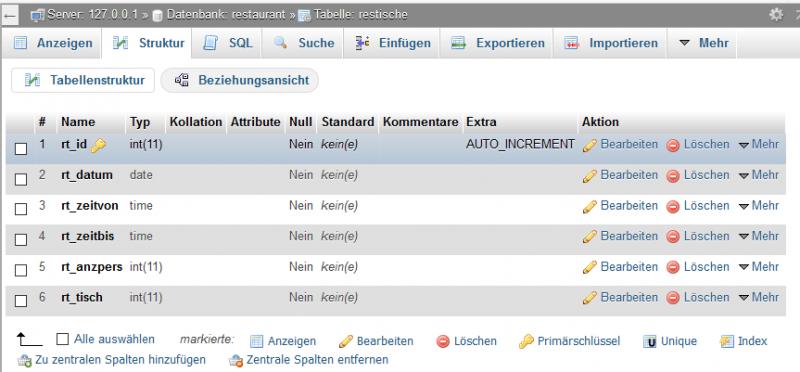 /* lesen alle bereits vorhandenen Daten: Tab: restische */