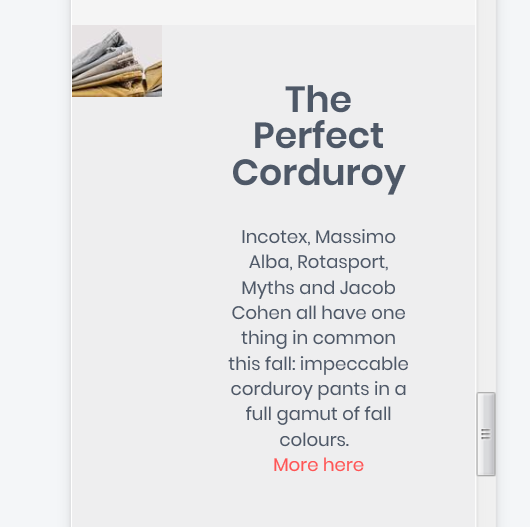 Ich habe aktuell den Text mit "display: none" inaktiv gesetzt und man sieht jetzt nur noch das Bild. Hätte den Text aber auch gern in der mobilen Version sichtbar und auch neben dem Bild. Alternativ würde auch darunter gehen.