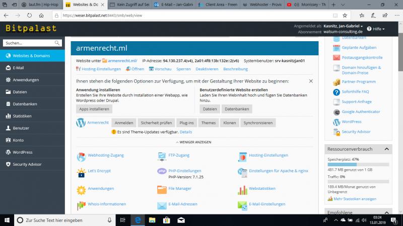 habe bei weser bitpalast webspace und eine Homepage hinterlegt. Dort habe ich auch eine entsprechende Domain angelegt.