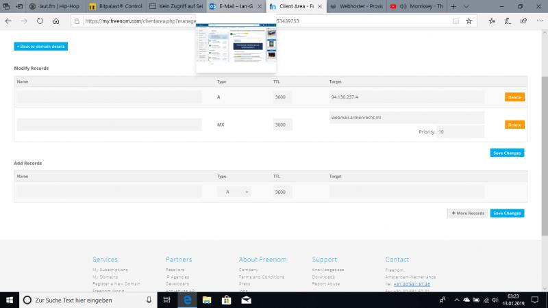 Nun habe ich beim Hoster einen a record mit verwais zur entsprechenden IP erstellt, kriege aber jedes mal die fehlermeldung die homepage sei nicht erreichbar.