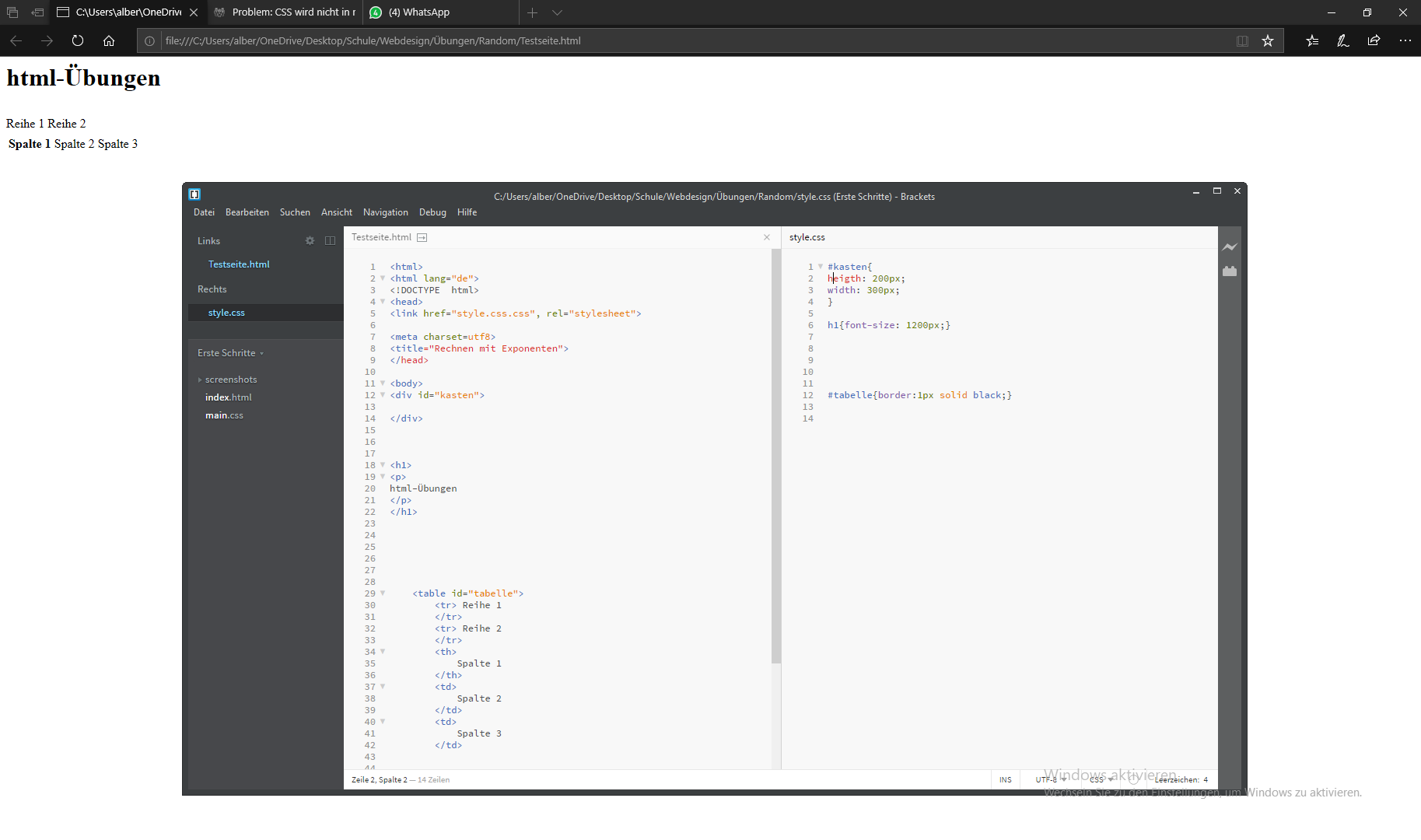 Die HTML und CSS Datei sind im gleichen Ordner. Deshalb habe ich auch im HTML keine Pfadangaben, sondern nur den Dateinamen reingeschreiben