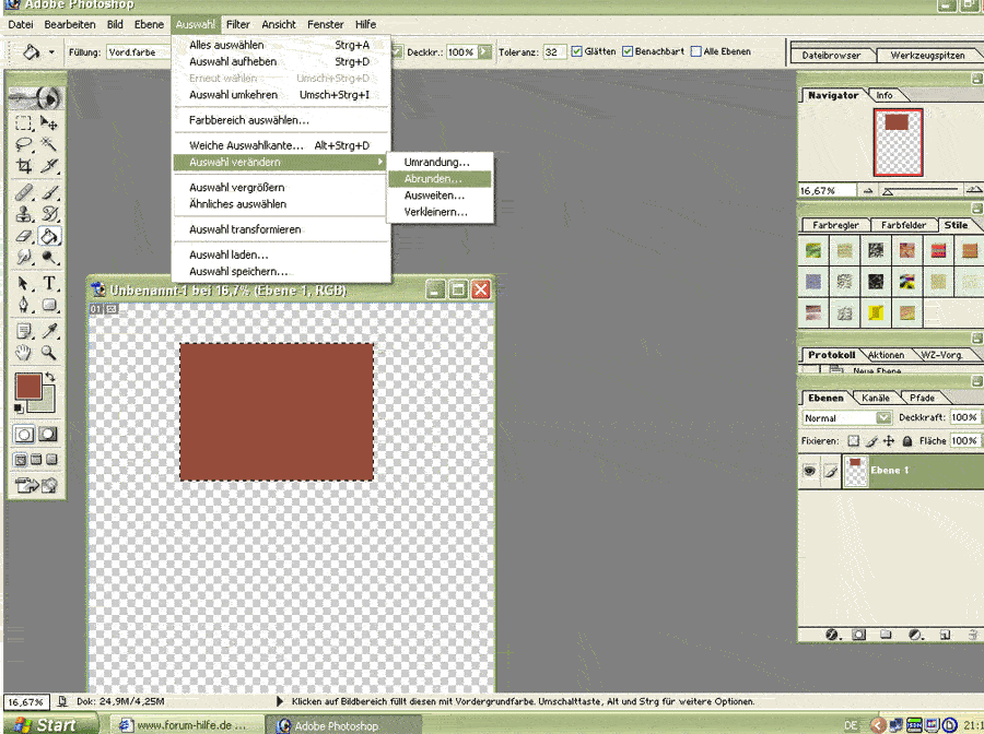 wie kann man in photo shop runde ecken machen