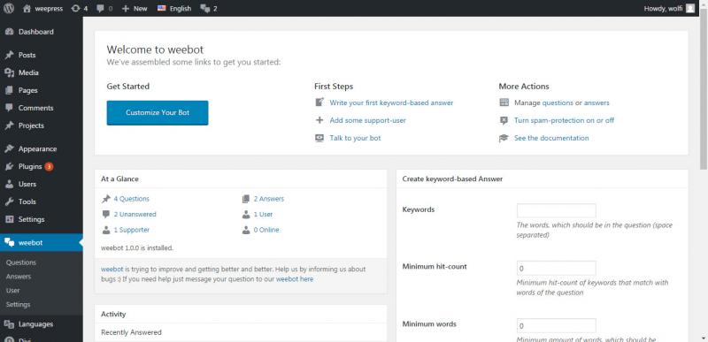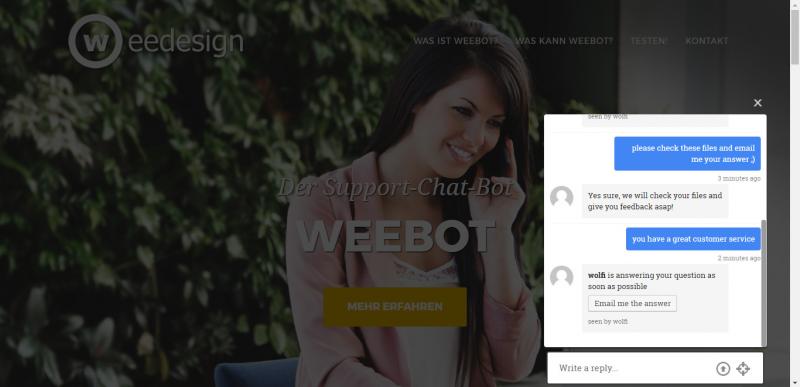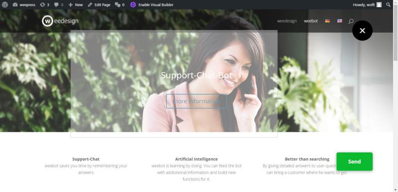 Der Support-Chat-Bot kann auf http://weepress.weedesign.de oder http://www.weedesign.de/weebot.html getestet werden.