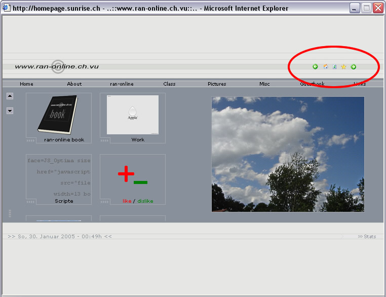 Ich mache gerade eine neue Seite. Dort möchte ich Buttons machen, die ein rollover haben, und bei einem MouseOut wieder langsahm in die Anfangsposition gehen (mit .gif-Bildern). Kann mir jemand helfen?thx