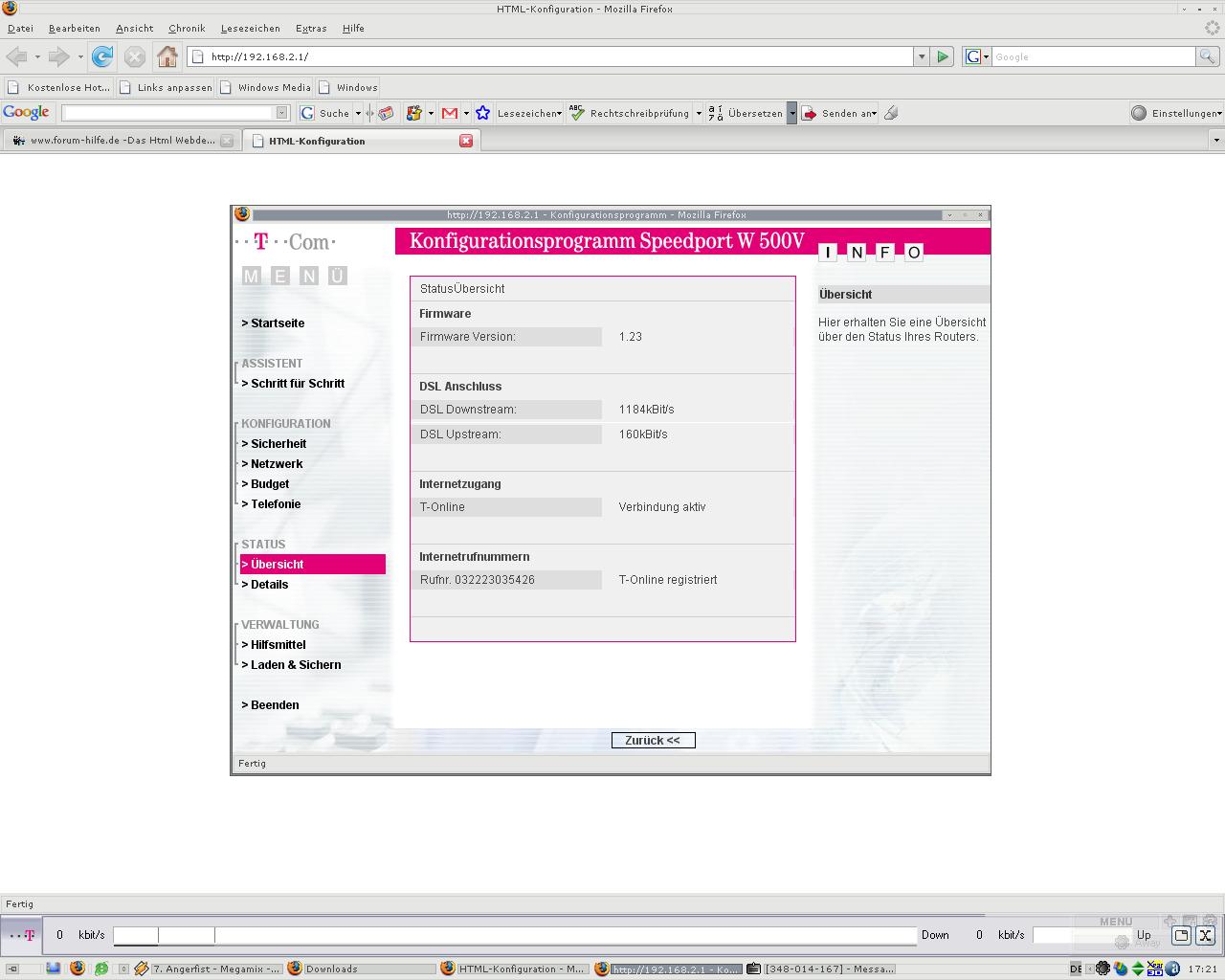 was ich noch kurz dazu sagen kann ist,in unserem Kontrollprogramm für den router steht und DSL Anschluss folgendes: