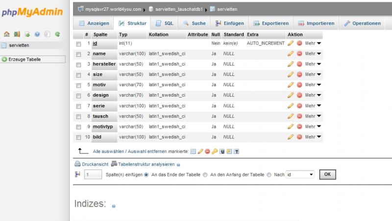 Ich habe 1 Datenbanktabelle: servietten