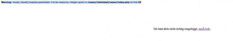 mysql_select_db("isteintest") or die ("Verbidung zur Datenbank war nicht möglich..."); $control = 0; $abfrage = "SELECT * FROM login WHERE user = '$user' AND passwort = '$passwort'"; $ergebnis = mysql_query($abfrage); while($row = mysql_fetch_object($ergebnis)) { $control++; }
