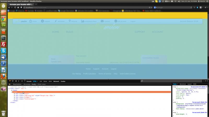 Screen: http://ubuntuone.com/6SotsBoXJdDqmdc4FzJgYM Wie man sehen kann ist das <body> markiert und oben das gelbe ist eigentlich hintergrund von body. Nur ist alles nach unten verschoben.