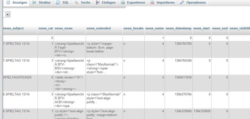 ich habe leider keine Ahnung von MSQL und nur wenig von PHP. Ich richtig weiß ich auch nicht wonach ich suchen muss. Daher bitte ich um Verzeihung falls die Antwort schon gepostet wurde. Jedenfalls möchte ich gerne für meine Beiträge (News), welche ich im CMS-System erstellt habe das Erstellungsdatum in die neue Datenbank übernehmen. Leider ist die Datumanzeige falsch. Ich weiß auch nicht, wie ich ich die im alten System (php fusion) um wandeln kann. Daher würde ich das am besten direkt in MySQL machen.