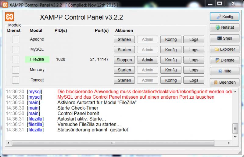 Bei xampp habe ich folgende Meldungen, mit denen ich nichts anfangen kann.