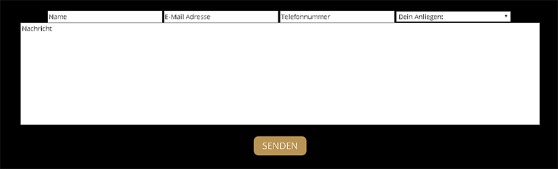2. Name, Email Adresse und Telefonnummer haben alle die gleiche Größe. Nur 'Anliegen Auswählen' (Drop-Down) nicht. Wieso? Ich habe dem Feld genau die gleiche CSS Eigenschaft zugeteilt, wie z. B. Text. Hier der Code: