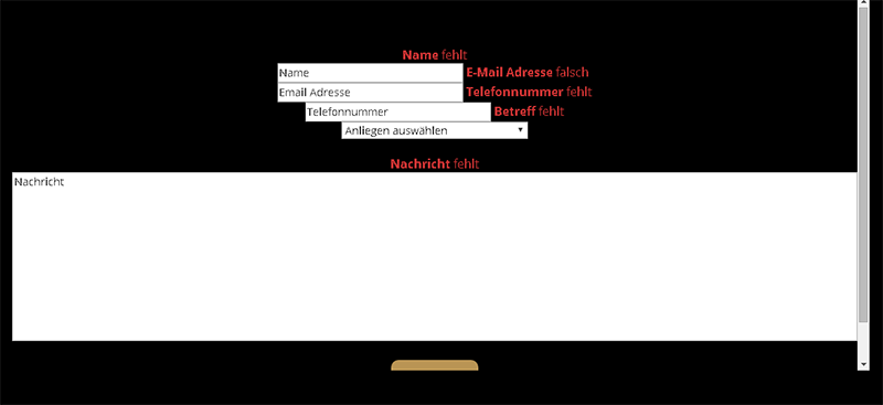 1. Die Fehlermeldungen werden neben den Feldern ausgegeben, dadurch kackt das Layout ab. Im original PHP-Kontaktformular ist eine Tabelle eingebunden, somit gibt er die Fehlermeldungen in der gleichen Zelle aus. Ich habe die Tabelle entfernt, da jedes Feld mehreren CSS Eigenschaften zugeordnet ist und je nach Gerät bzw. Screengröße die Felder nebeneinander oder untereinander aufgestellt werden.