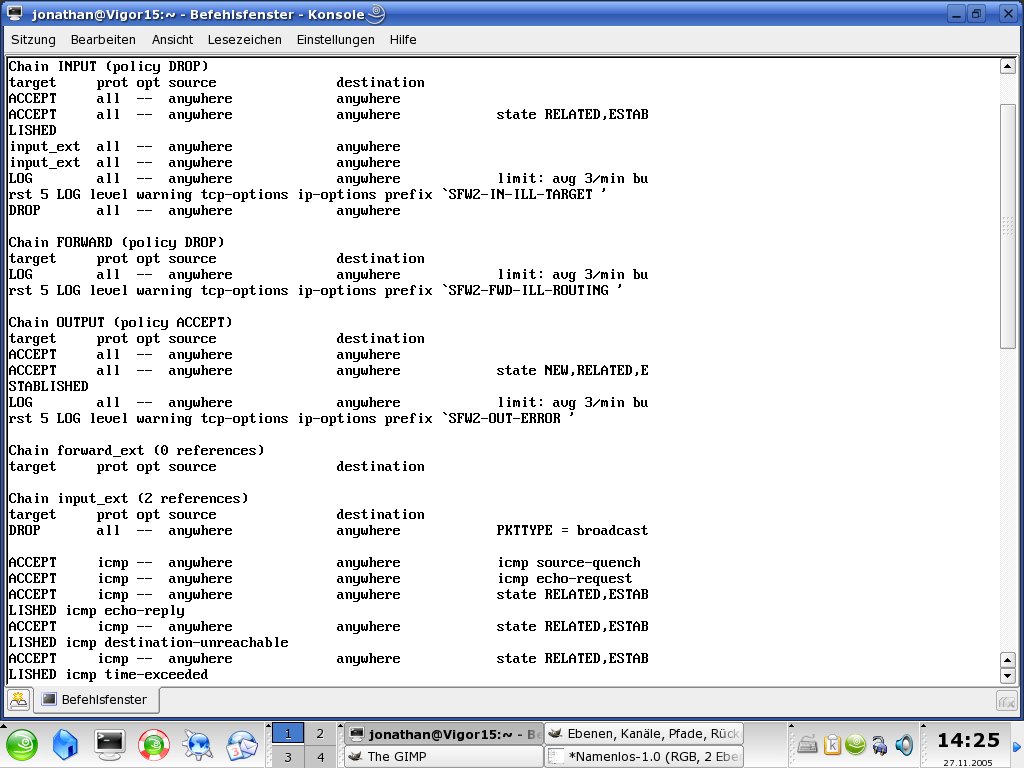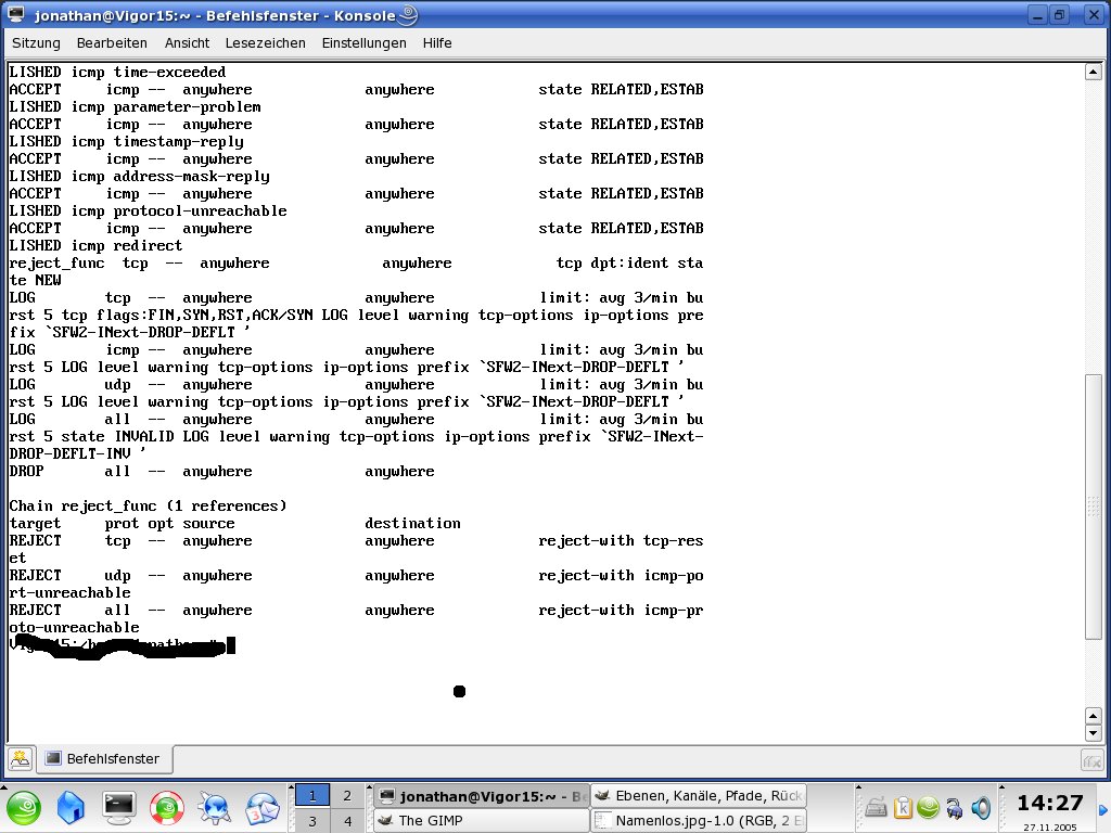 Firewall aus : iptable --list:Chain INPUT (policy ACCEPT)