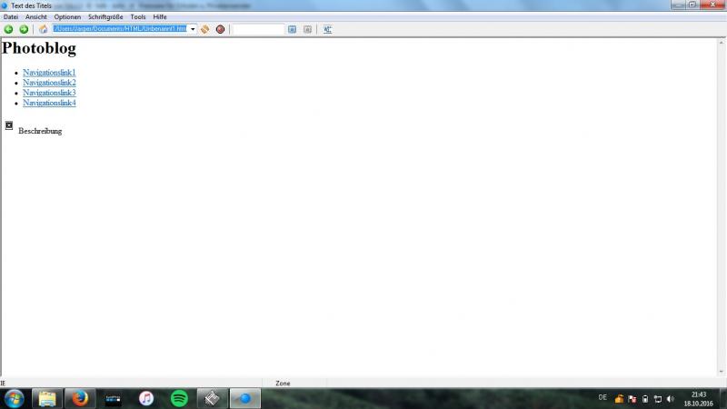 Ich hab mich dann rangemacht und wollte einen Fotoblog erstellen. Links soll ein "Fenster" entstehen und ein rechts auch eins. Aufteilung etwa 25% zu 75%. Über dem ganzen soll eine Überschriftenleiste zu sehen sein, die immer ganz oben auf der Seite bleibt und der Content "unter ihr durchfährt". Und da beginngen die Probleme: