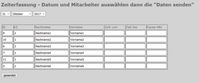 Ausgabe eines Formulars (mit Bezug aus „Anzahl Personen“ Formular-1) – die Dateninhalt kommen aus einer MySQL-Tabelle – und einem zusätzlichem Auswahlfeld pro Zeile