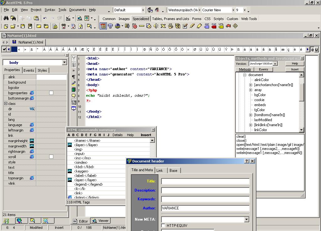 Nun noch meine Geschichte: am anfang arbeitete ich mit Forntpage:(. der war mir zu mühsam. dann hab ich mal HTML gelernt und mit dem Notepad gearbeitet, bis ich dann Phase5 entdeckte. Den fand ich schon sehr gut nachdem ich notepade hatte. jetzt arbeite ich seit neuem mit acehtml5. ist das besste!!!!!!!!!!!!!!