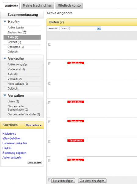 Ich habe bei ebay auf einige Artikel geboten und wurde überboten.