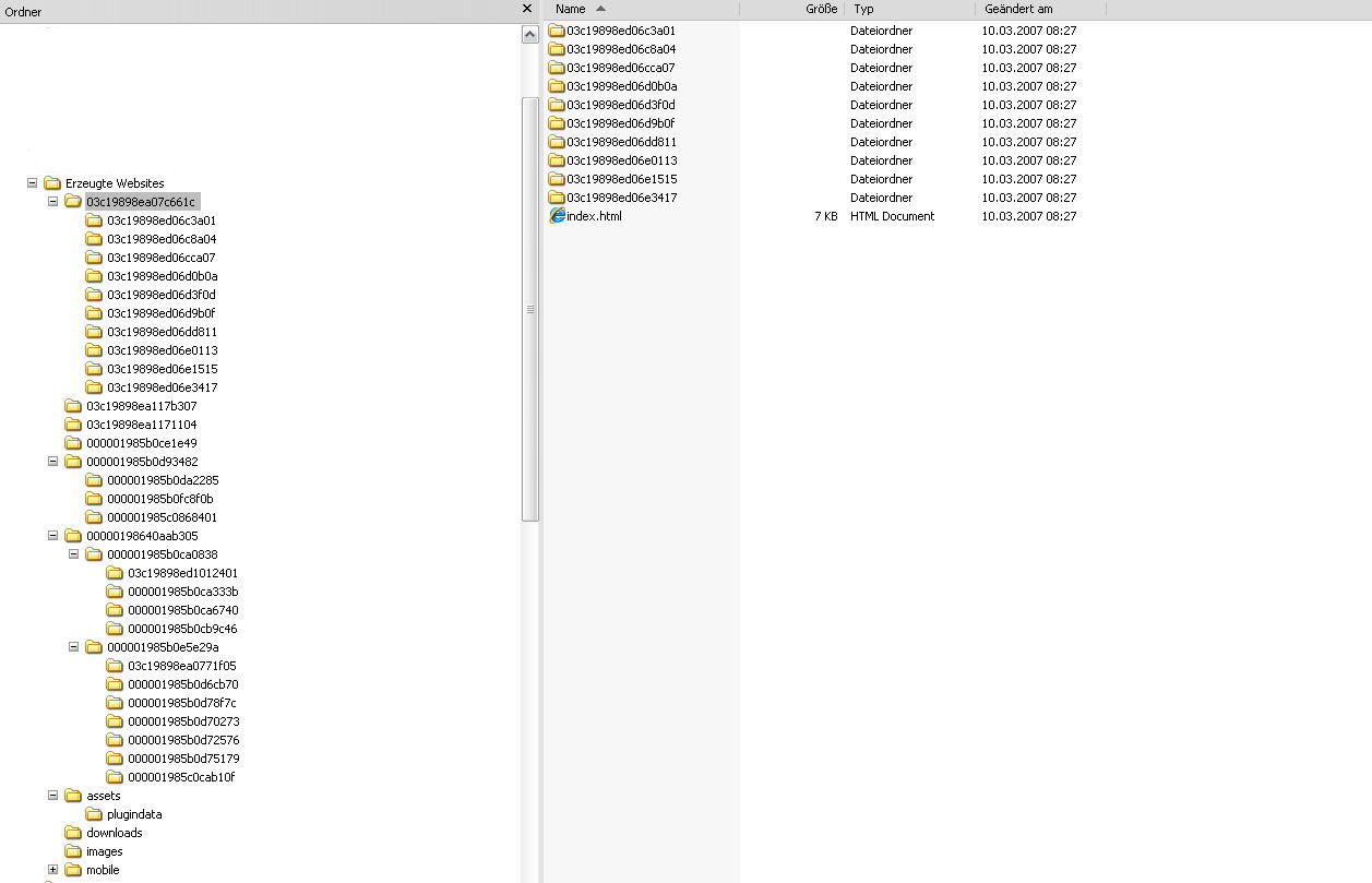 Ich habe dann mal im Explorer unter "Erzeugte Websites" nachgeshen, da hat fast jeder Ordner und Unterordner das Verzeichnis "index.html" (siehe Anlage).