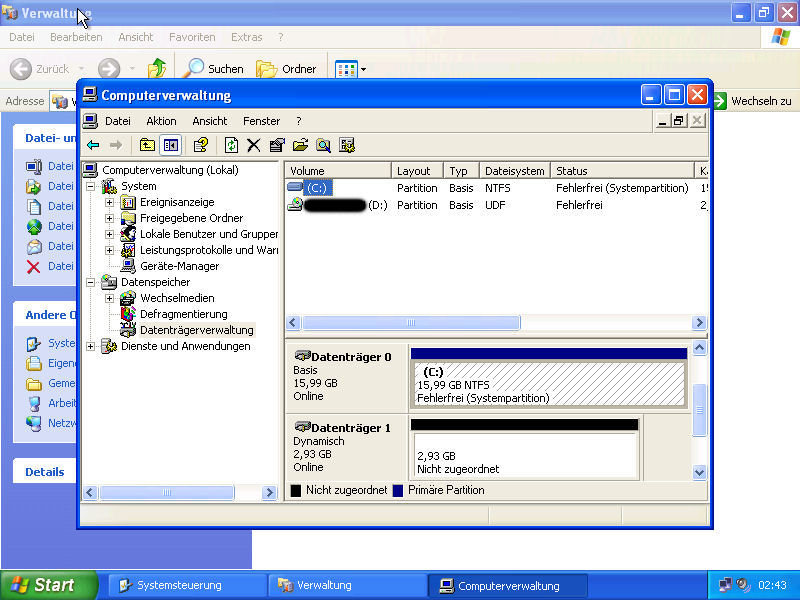 systemsteuerung -> verwaltung -> computerverwaltung und dort "in dynamischen datenträger konvertieren" so habe ich meine platte damals angezeigt bekommen. (wusste den genauen begriff nicht sorrY)