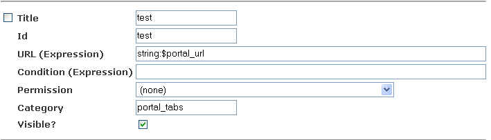 Um den neuen Reiter "test" hinzuzufügen, hab ich in portal_action die angehängte Aktion hinzugefügt. Klappt - kann aber sein, dass da bei mit ein Product verantwortlich ist (PortalTabsPullDown).